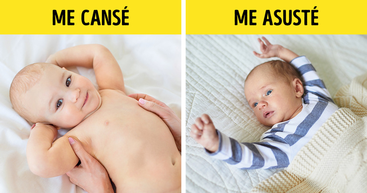- Levanta los brazos bruscamente: Este movimiento significa que el niño se asustó. Un sonido fuerte, una luz brillante, un despertar repentino pueden provocar sobresaltos, en este caso hay que calmar al bebé.