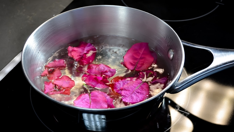 -Hervir una cacerola con agua y cuando ésta rompa hervor, colocar las flores dentro.