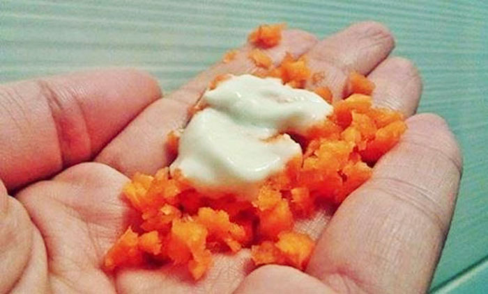 En 100 ml de agua, añadir la maicena y mezclar. Ponga la mezcla en una olla en el fuego hasta que espese. Después de que la mezcla se enfríe, añadir el jugo de zanahoria y la crema Nivea. Ahora, mezclar todos los ingredientes juntos.